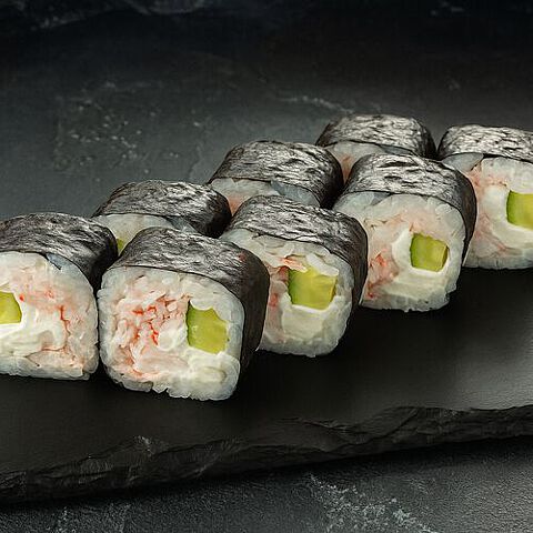 Сыр сливочный, креветка тигровая, угорь, огурец, рис, нори