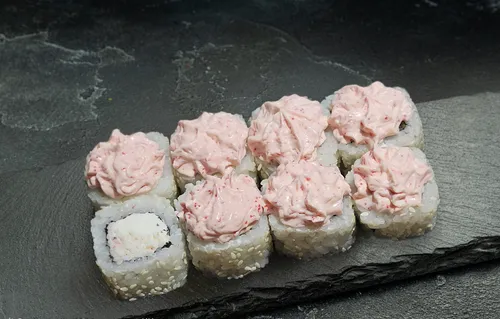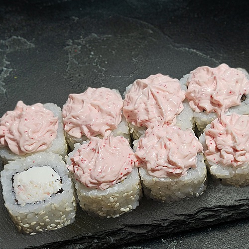Сыр, сливочный, крабовый крем, кунжут, рис, нори, лава-соус