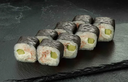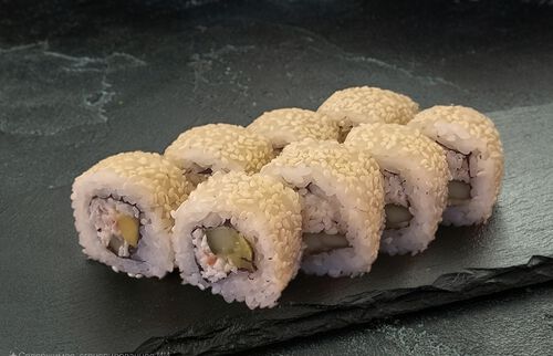 Крабовый крем, авокадо, огурец, кунжут белый, рис, нори