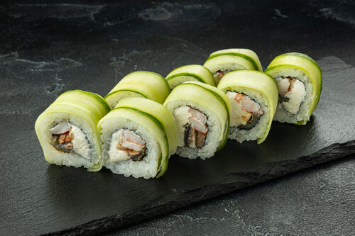 Сыр сливочный, креветка тигровая, угорь, огурец, рис, нори