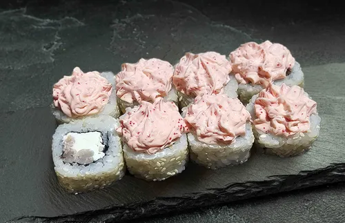 Сыр сливочный, креветка салатная, кунжут, рис, нори, лава-соус